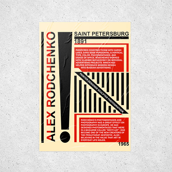 Infographic poster about Alexander Rodchenko honoring his style.